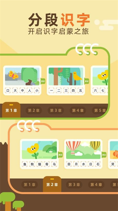 5、每完成一个单元后,孩子可参与综合测试,测验内容包括认字、发音匹配、图文配对等形式,帮助孩子查漏补缺。