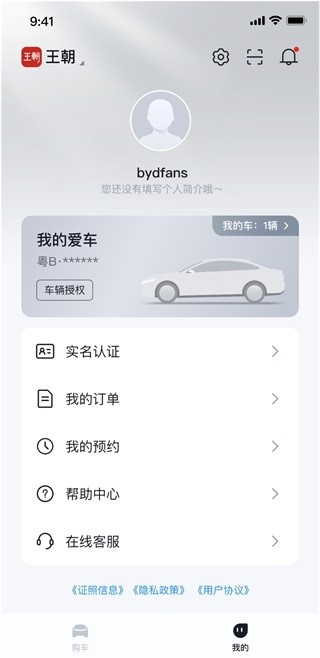 1、登录比亚迪,进入“我的”,在“我的车辆”中选择要授权的车辆。