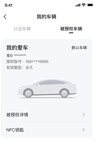 2、如果车主授权了NFC钥匙功能,被授权人可在爱车页面点击NFC,只要手机支持NFC功能,可以添加手机NFC钥匙。