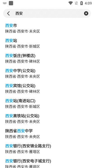 2、在搜索栏中输入你想查询的位置(如“西安”)。