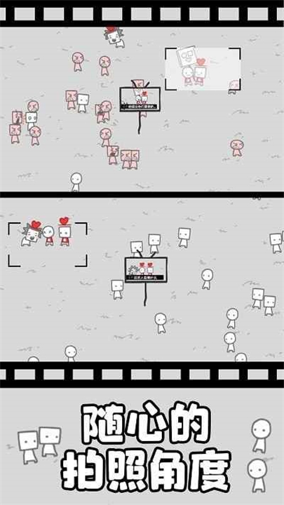 3、游戏的核心玩法是拖动照相框,抓拍不同人物的照片,拍下越独特的场面越有趣。