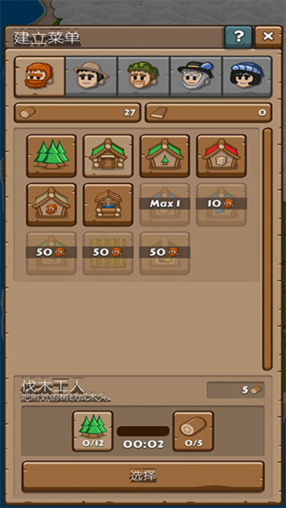 8. 不同类型的木屋有各自的属性和状态,点击木屋即可设置其工作内容和状态。