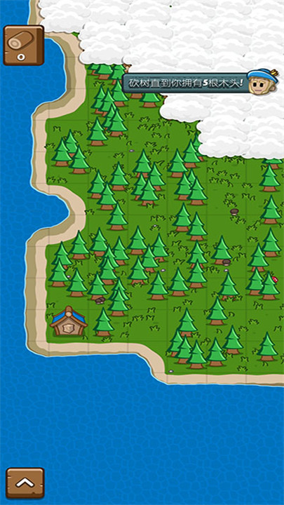 3. 在屏幕右上角会提示玩家需要五个树桩,点击场景中的树木以获取树桩。