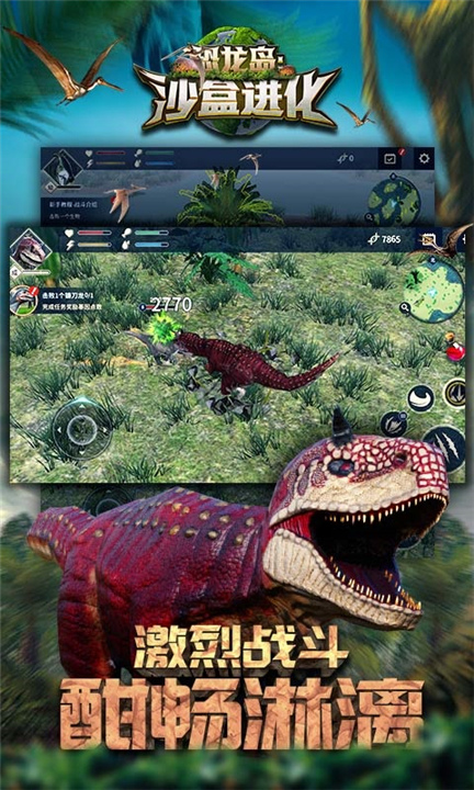 3.丰富的恐龙进化系统:从迅猛龙到霸王龙,从副栉龙到三角龙,多个进化选择,打造属于自己的强大恐龙。