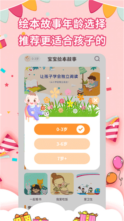 无论是睡前故事、亲子阅读,还是独立自主阅读训练,宝宝绘本故事都能提供相应的内容选择,让早教真正走进孩子的日常生活。