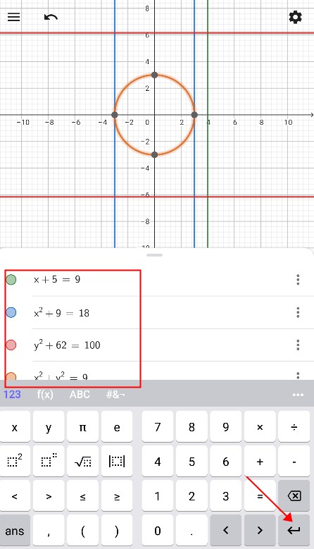 1、在下方键盘输入函数后,点击回车键,计算器上方会显示对应的函数图形。