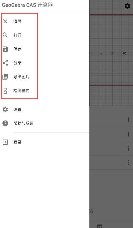 3、单击左上角的横杠图标,可以保存、导出或分享生成的函数图像。