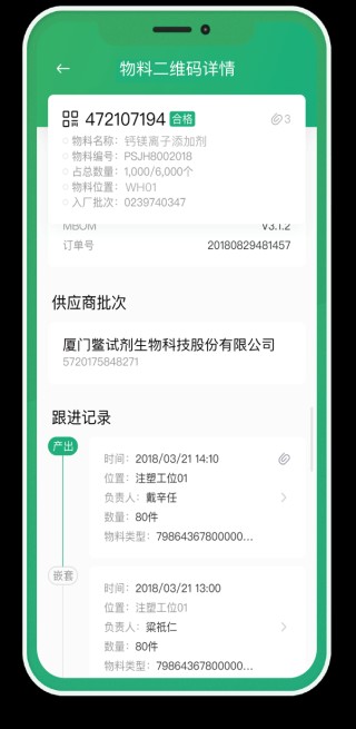 6、进料记录:在线登记原材料的进料情况,统计和管理进料数据,便捷查看进料情况。