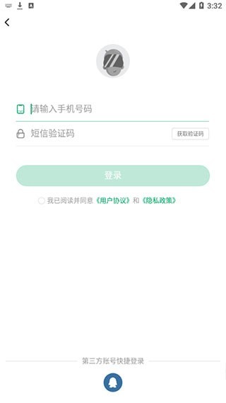 2、点击首页右上方的标志,输入手机号和验证码完成注册登录,开始签到并使用部分功能。