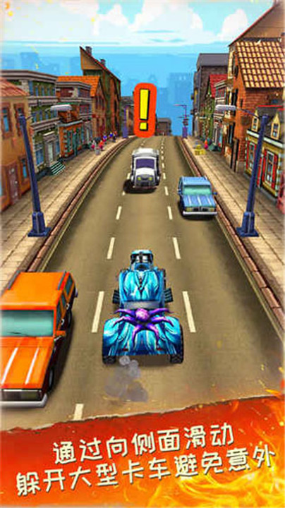 3. 进入游戏后,左右滑动屏幕即可操控车道,上滑则激活超炫技能,开启激情驾驶。