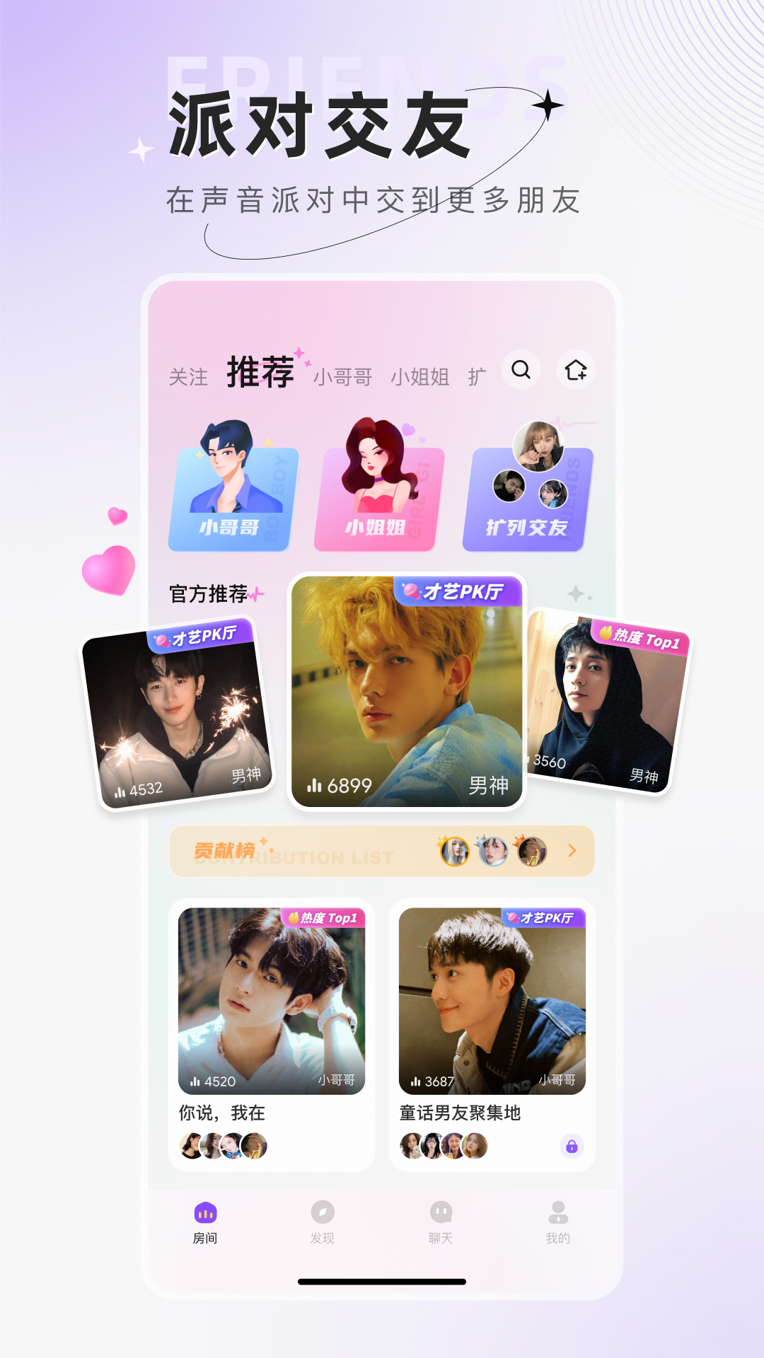 3.智能匹配适合你的陌生人,各种不同的音色温暖陪伴