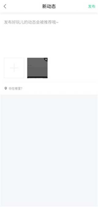 3、在发布新动态界面,选择上传【视频】或【照片】。
