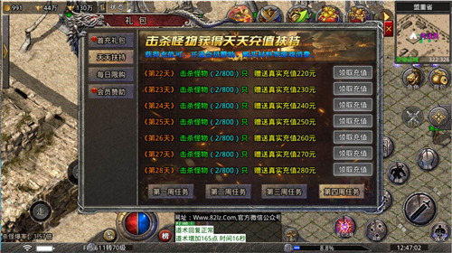 2、聚灵珠5倍经验吸收,勋章、玉佩、斗笠、血石特殊装备,收集碎片即可合成为高级。