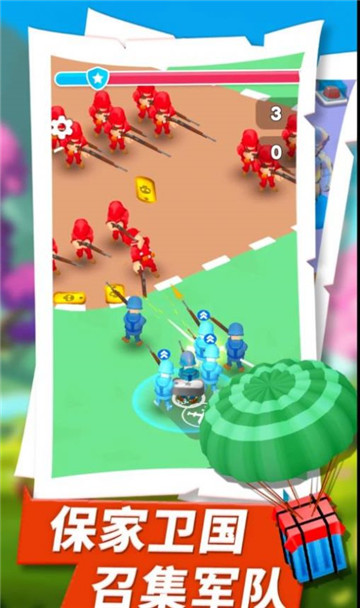尽可能地招募更多的军队,开启特定的级别和装备,使用坦克,火箭,飞机来打击敌军。
