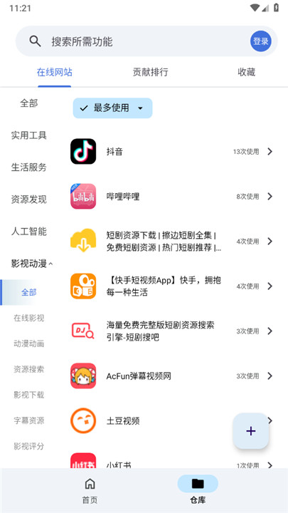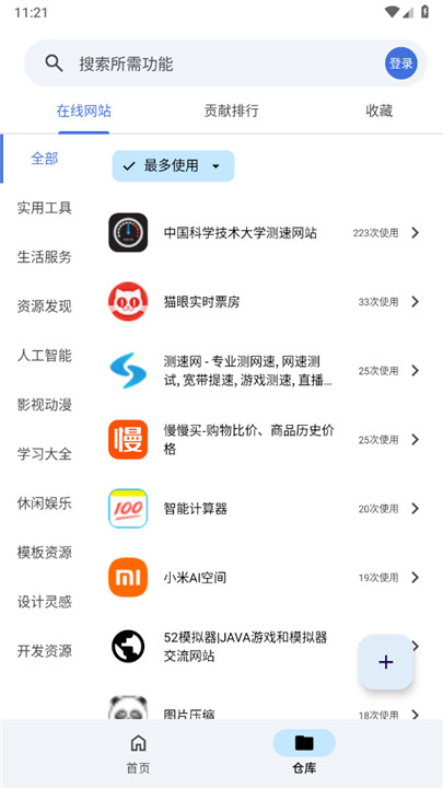 5. 最后别忘了去仓库板块,左侧分类一目了然,点一下就能快速进入使用。