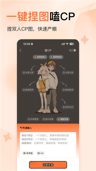 1. 支持角色配对创作,让你轻松脑补CP剧情。