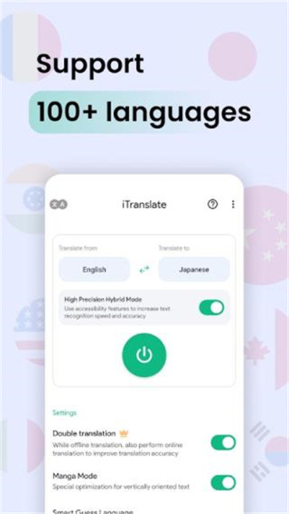 通过拖动浮动球到需要翻译的区域,立即将文字转换成您的目标语言。点击全屏翻译悬浮球,还能翻译整个屏幕内容。