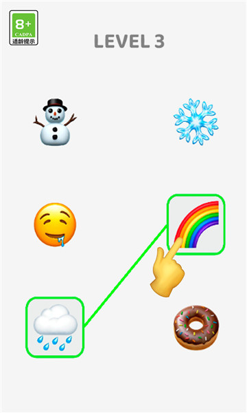 1、玩家需要注意到各种连线的规则,将有关联的表情连线匹配起来,顺利完成每一关的挑战。