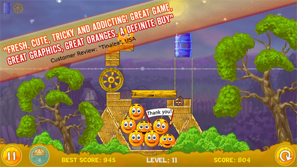 下载保护橙子手机中文版下载是个结合逼真物理效果与童趣画面及音乐的益智解谜游戏。游戏中,玩家需通过滚球、炸弹、木箱等道具,利用流畅的触屏操作保护橙子免受酸雨侵袭。每个关卡设计独特,地形和道具的使用都需细心考量,挑战玩家的智慧与反应力。游戏拥有多个场景和丰富的关卡,每关谜题和元素各不相同,需左右遮挡橙子,防止被乌云污染,否则游戏失败。快来保护橙子手机版下载,发挥聪明才智,保护橙子安全吧!