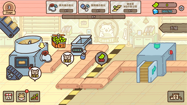3、多种制作设备等待解锁,高级设备能制作更精致的饼干,带来视觉和收益的双重提升。