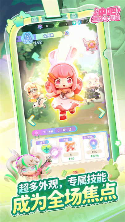 下载冲吧迷你少女团安卓手机版下载是架空题材的模拟经营类手游,玩家将在模拟世界宇宙中化身为美少女经纪人,帮助各个星球的迷你少女,挑选并培养练习生,协助她们完成各种体能训练、跑酷和商业活动,同时玩家还需要收集资源来维持小岛发展。在冲吧迷你少女团最新版本下载中,玩家还能通过持续的经营让自己的公司成为世界闻名的经纪公司。冲吧迷你少女团手机版下载最大的特色是场景的解锁,在不同阶段玩家将拥有不同的跑酷地图,让玩家的游戏体验更加有乐趣。