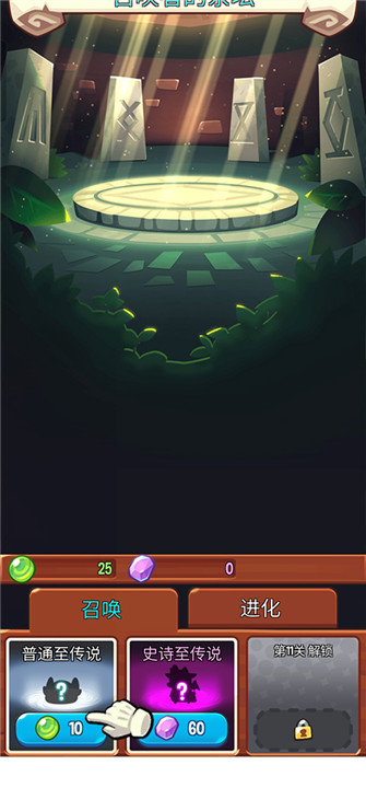 4、游戏内掉落金币可用于怪物升级,召唤珠可用于招募新单位,钻石可开启强化增益。