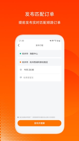 司机可以发布个人行程,系统会自动匹配顺风车订单。