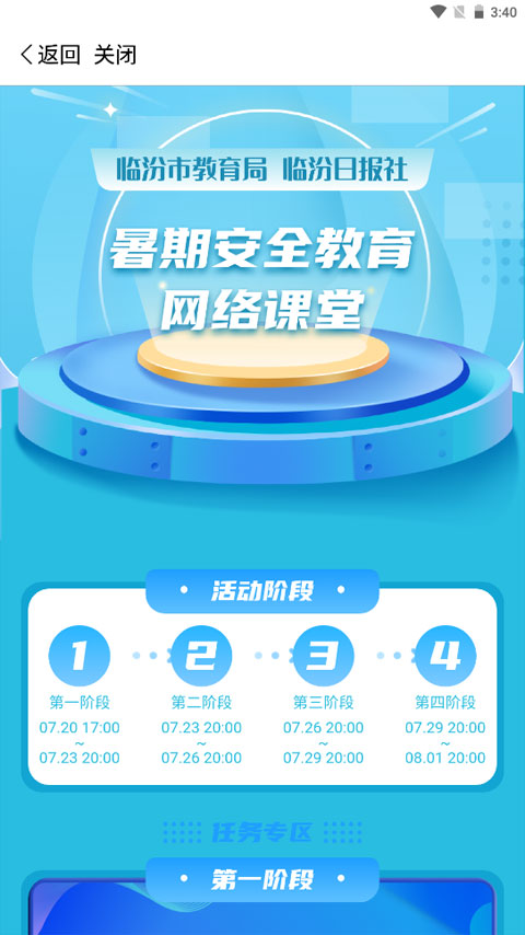 1、下载并打开临汾云,在首页中点击进入【暑期安全教育网络课堂】
