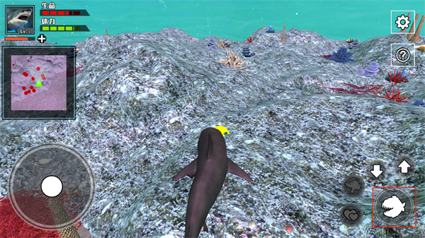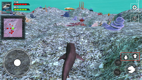 7、每捕食一条鱼都会获得经验,等鲨鱼到10级后,玩家还可以通过两个爱心按钮进行生育