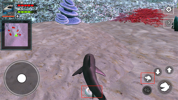 4、当遇到能吃的小鱼,玩家可以点击下图红色选框按钮进行捕食