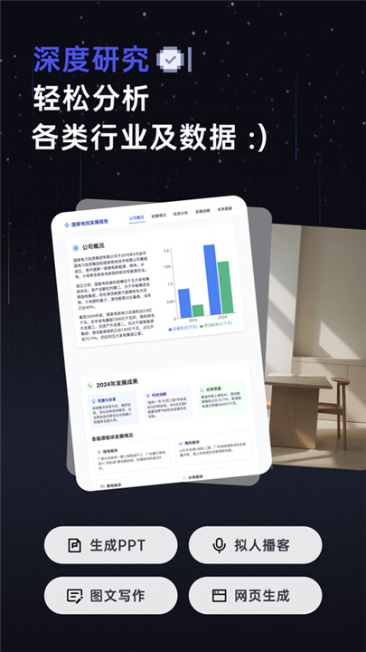 2、多模态输出适配不同办公场景,无需额外软件支持即可生成专业文档或展示材料。