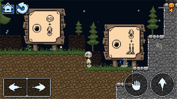 游戏玩法:在这款冒险游戏中,玩家需要扮演一个想要恢复成人类的骷髅,搜集所有的骨头和有用的工具,恢复最初的外观。