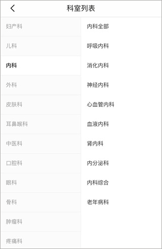 3、如果想要预约挂号,点开科室列表,十分的全面清晰;