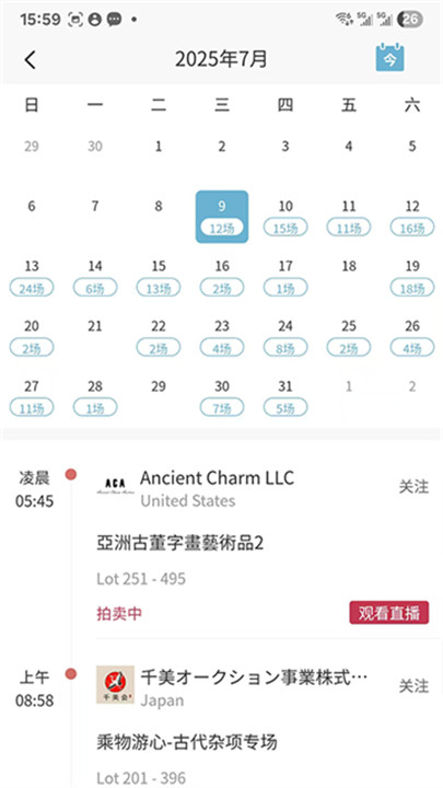 2、拍卖日历功能让大家更加直观的知道每一场拍卖的具体时间和拍卖内容。