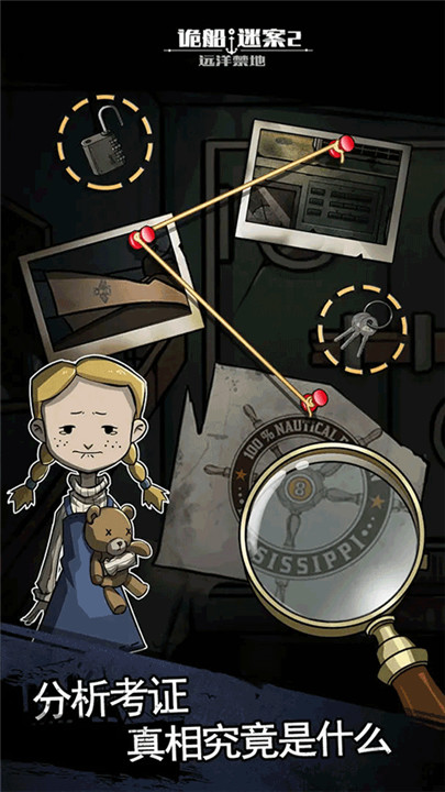 下载诡船谜案2安卓版下载为玩家呈现有趣的冒险解谜类手游,游戏延续了前作的画面风格,也有着独到的烧脑玩法,玩家将在这里跟随小队对这艘豪华的邮轮展开冒险并揭开背后的秘密。诡船谜案2汉化版下载有着丰富多样的谜题,玩家需要在地图中收集各种道具,在各个角落寻找隐藏的细节和线索,揭开各种由小游戏组成的谜题,随着故事的推移,玩家将寻找到剧情最关键的部分,同时游戏还设置了多种结局、成就等着玩家来收集,是耐人寻味的冒险解谜游戏。