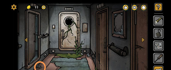 9、出大门后,手电筒光荣地退休了(不是核能手电筒差评),点击前方塌陷的木板,获得扳手。