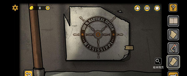 4、第四个绘本在进入到船长室后(不是在回忆里,是在现实中),右侧驾驶台下面有个很长的抽屉,点击放大后下面那个抽屉需要解锁,