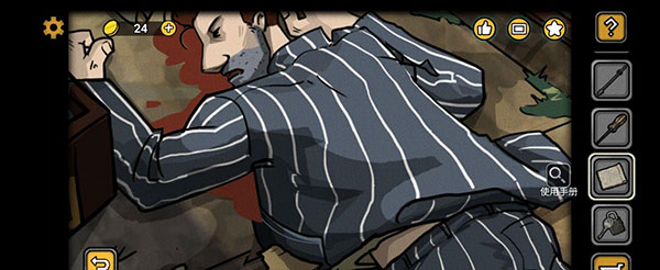 12、进入新区域后,点击白布发现使用手册。通过白色大门,发现尸体,点击金币(更新记录),获得厨房钥匙。掀开衣角发现绘本残页。(绘本残页全部放入绘本中解锁成就“恐怖故事”)