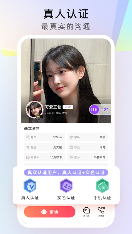2.每位用户都经过真实真人认证功能,不用担心和机器人聊天