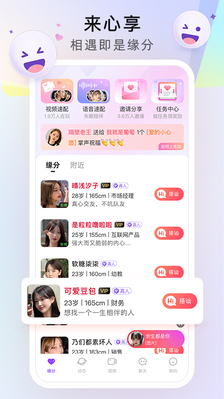 1.支持语音速配功能,通过声音的方式邂逅有缘人