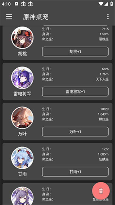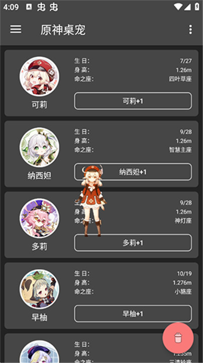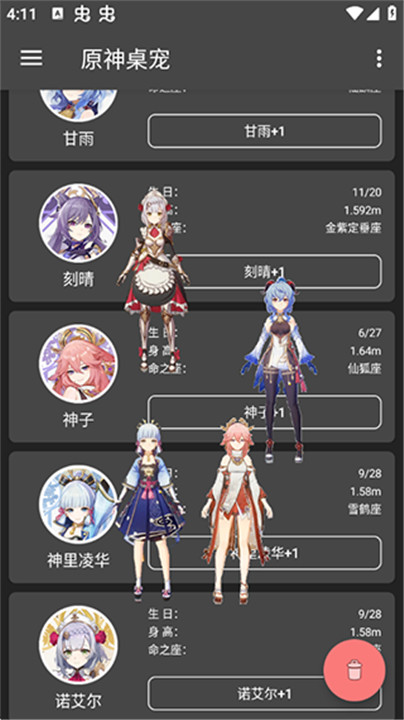 3、当你找到了心仪的原神人物后,点击软件界面上的“+1”按钮;这个按钮的作用是将所选人物添加到桌面上;点击后,软件会自动将该人物添加到你的桌面背景中;