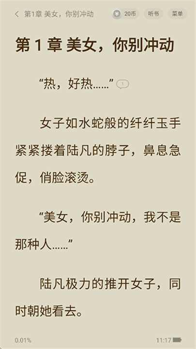 2、模仿真实书籍的阅读效果,支持夜间自动翻页、朗读、滚动。
