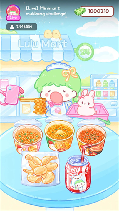 咔哒咔哒!今天的吃播也大成功。热烈的聊天内容看起来反应也不错。看来得利用完成观众任务得到的赞助金来买新材料了!