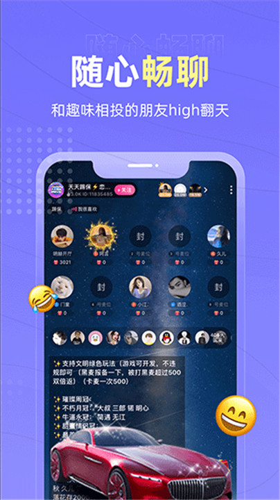 专为年轻人打造的个性化语音交友平台,轻松找到开心玩伴;精彩互动房间【相亲房】让你与好友快速破冰,消灭尬聊,急速升温。