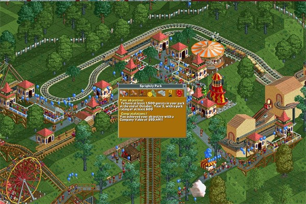 过山车大亨作为一款世纪交接时发布的作品,多年来凭借出色的自由度和令人眼前一亮的关卡设计吸引了很多铁粉。游戏发售后,官方又先后发布了两部资料片:欢乐天地和极限翻转,其中欢乐天地着重于对玩家经营能力的考验,而极限翻转则主要针对过山车的设计。这次我要说的是欢乐天地资料片中非常有意思的一关:Sprightly Park。