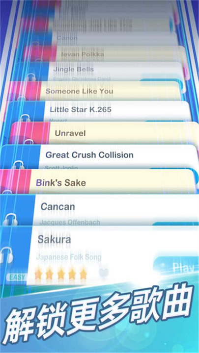 3、内置音乐魔法块,挑战你的手速极限,超多乐谱等着你解锁,世界各地的名曲这里都有;