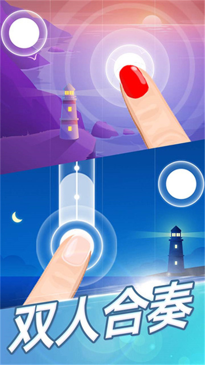 2、游戏玩法简单,只需要点击节奏小圆点和长按节奏条就可以完成歌曲的演奏。