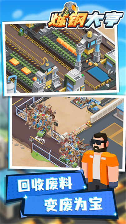 下载炼钢大亨安卓版的钢铁在高温下翻滚,熔炉喷出的火光映照着整个厂区,每一次加工都充满力量与成就感。炼钢大亨安卓版将玩家置于大型钢铁加工厂的管理核心,操作特制磁力收集车回收废铁,将其送入炼钢炉熔炼成钢水,再经过锻压、铸模和冷却等工序,最终形成钢坯进入车间精细加工。