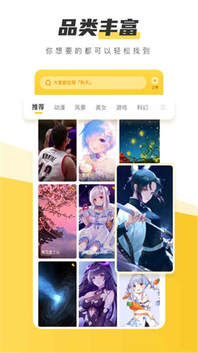 2、【品类丰富】动漫游戏,风景动物,美女明星,你想要的都可以轻松找到。