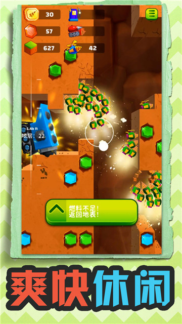 按下箭头键来控制钻机的方向,避开熔岩块,越往下,获得的回报就越大。